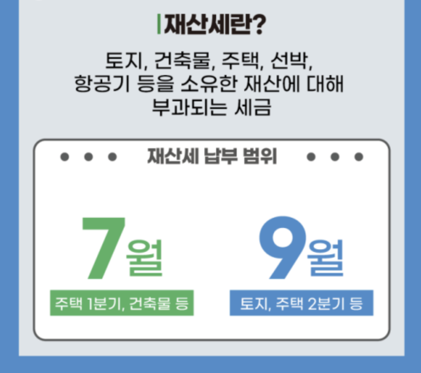 2025년 7월은 정기분 재산세 납부의 달입니다. 재산세는 주택, 건축물, 선박, 항공기 등의 보유자에게 매년 부과되는 지방세로, 과세기준일인 6월 1일 현재 소유자에게 부과됩니다. 납부 기한은 2025년 7월 16일부터 7월 31일까지로, 기한 내 납부해 불이익이 없도록 유의해야 합니다.