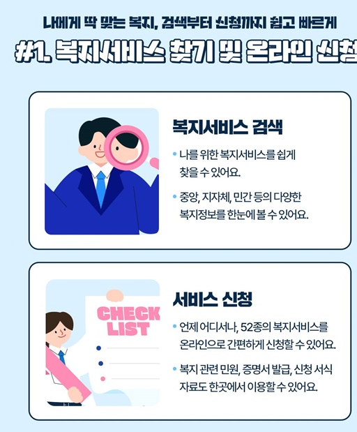 필요한 복지서비스, 검색부터 신청까지 온라인으로 처리할 수 있도록 했습니다