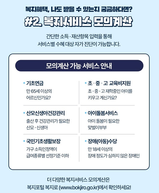 내가 받을 수 있는 복지인지, 사전에 모의계산으로 확인할 수 있도록 했습니다.