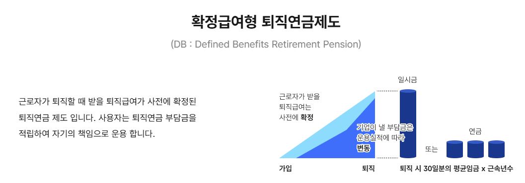 퇴직 후 받을 금액이 근속연수와 평균임금에 따라 사전에 확정되는 방식이다. 퇴직급여의 운용과 관리는 사용자인 회사가 담당하며, 근로자는 안정적인 수령 금액을 보장받을 수 있다.
