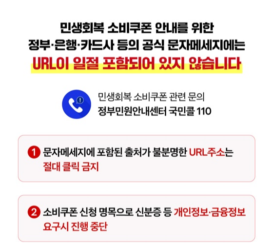 민생회복 소비쿠폰 스미싱 사기 개인정보 요구