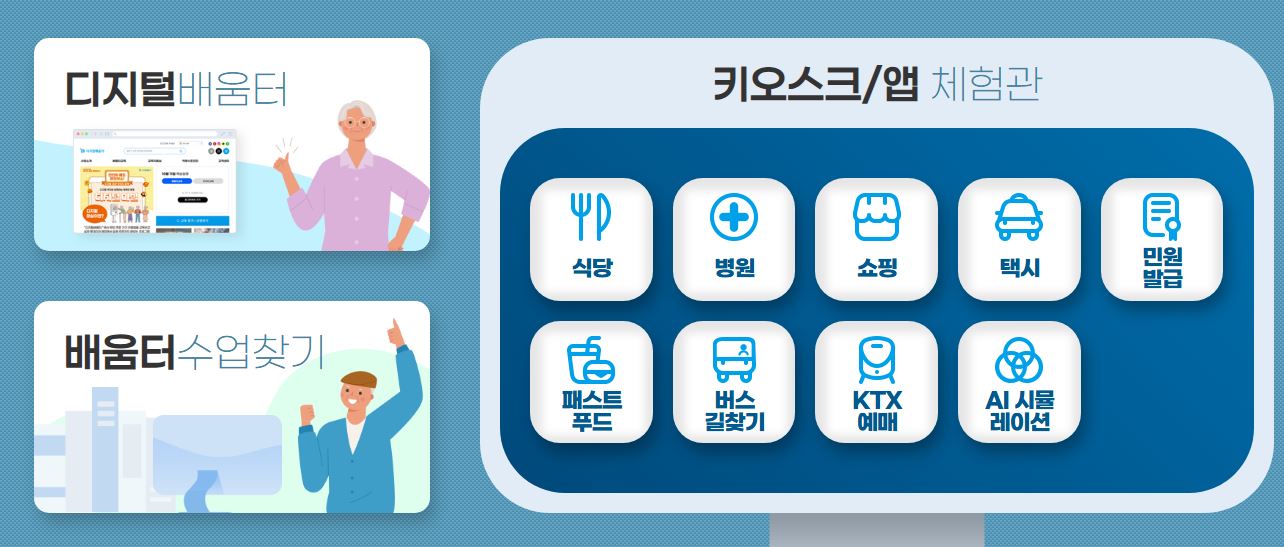 키오스크 하나 제대로 사용하려 해도 생각보다 많은 단계를 거쳐야 하며, 이러한 경험이 반복되면 디지털 기기 자체에 대한 두려움을 느끼게 되기 쉽습니다. 하지만 디지털배움터를 통해 반복 학습과 실제 체험을 병행하면, 누구나 충분히 디지털 사회에 적응할 수 있습니다.