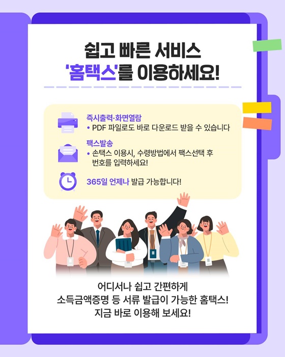 과거에는 행정기관의 운영시간에 맞춰 시간을 내야 했지만, 홈택스에서는 새벽이든 주말이든 상관없이 원하는 시간에 직접 서류를 준비할 수 있어 많은 사람들이 선호하게 되었습니다.