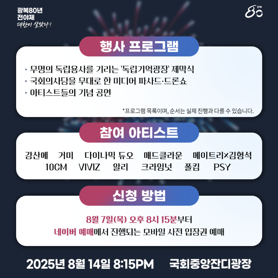 광복80주년 전야제 세대를 아우르는 출연진 및 참여 방법