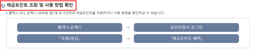 (1) 홈택스(PC) 또는 손택스(모바일)에서 현재 보유 포인트를 조회