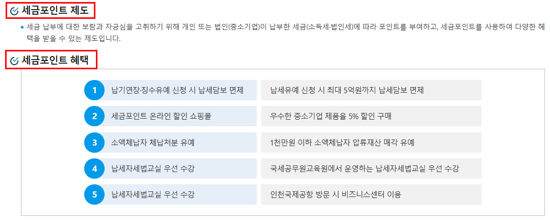 납세자가 보유하고 있는 세금포인트를 사용하여 중소기업 제품을 할인받아 구매할 수 있는 세금포인트 할인쇼핑몰